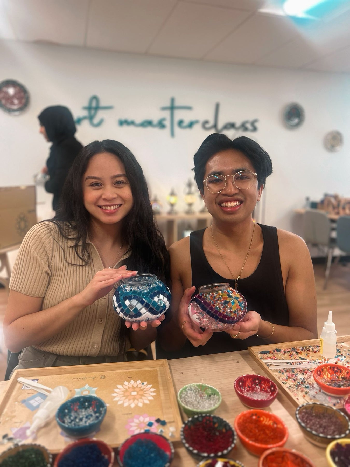 Our workshops are designed for beginners, so everyone is welcome to join. By the end of this 2.5-hour class, you’ll have your very own handcrafted mosaic lamp to take home, along with unforgettable memories.
