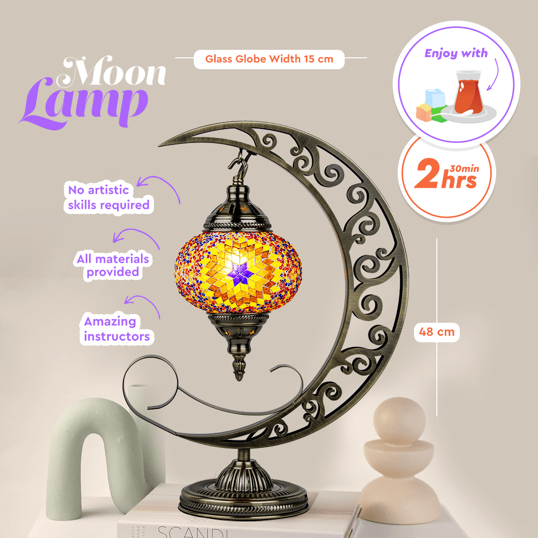 Our workshops are designed for beginners, so everyone is welcome to join. By the end of this 2.5-hour class, you’ll have your very own handcrafted mosaic lamp to take home, along with unforgettable memories.