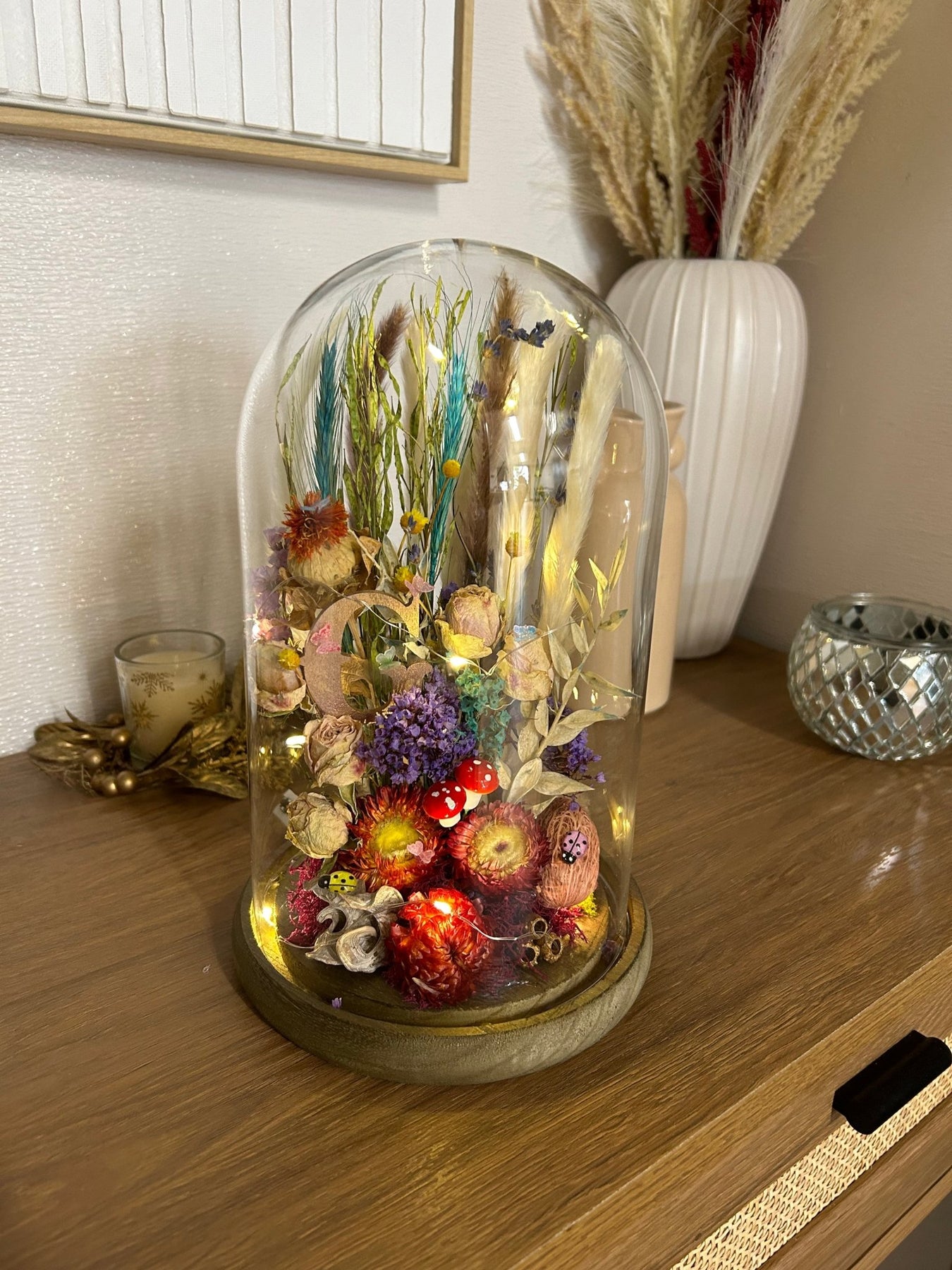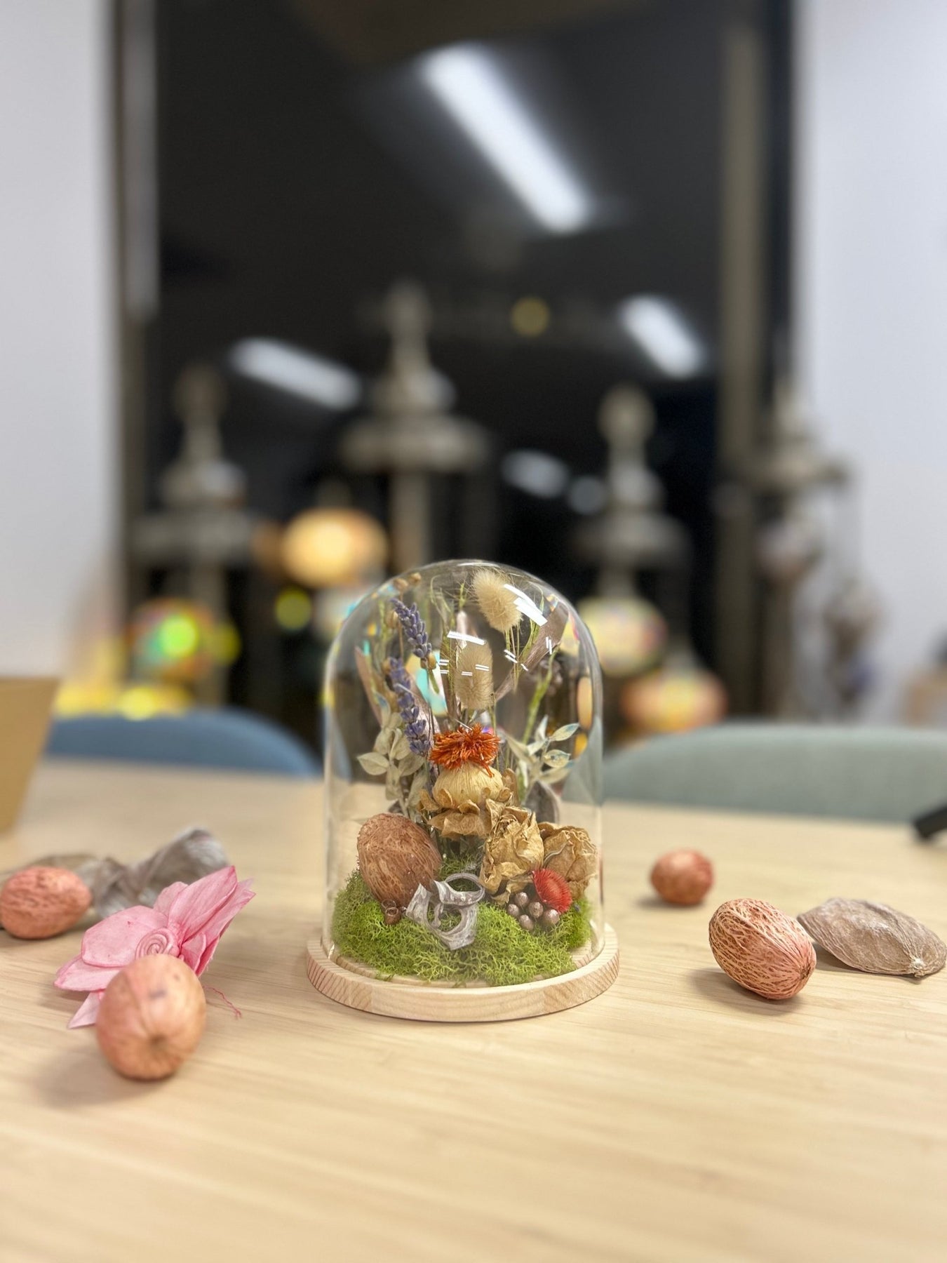You’ll design a stunning dome using preserved flowers—perfect as a keepsake or gift.