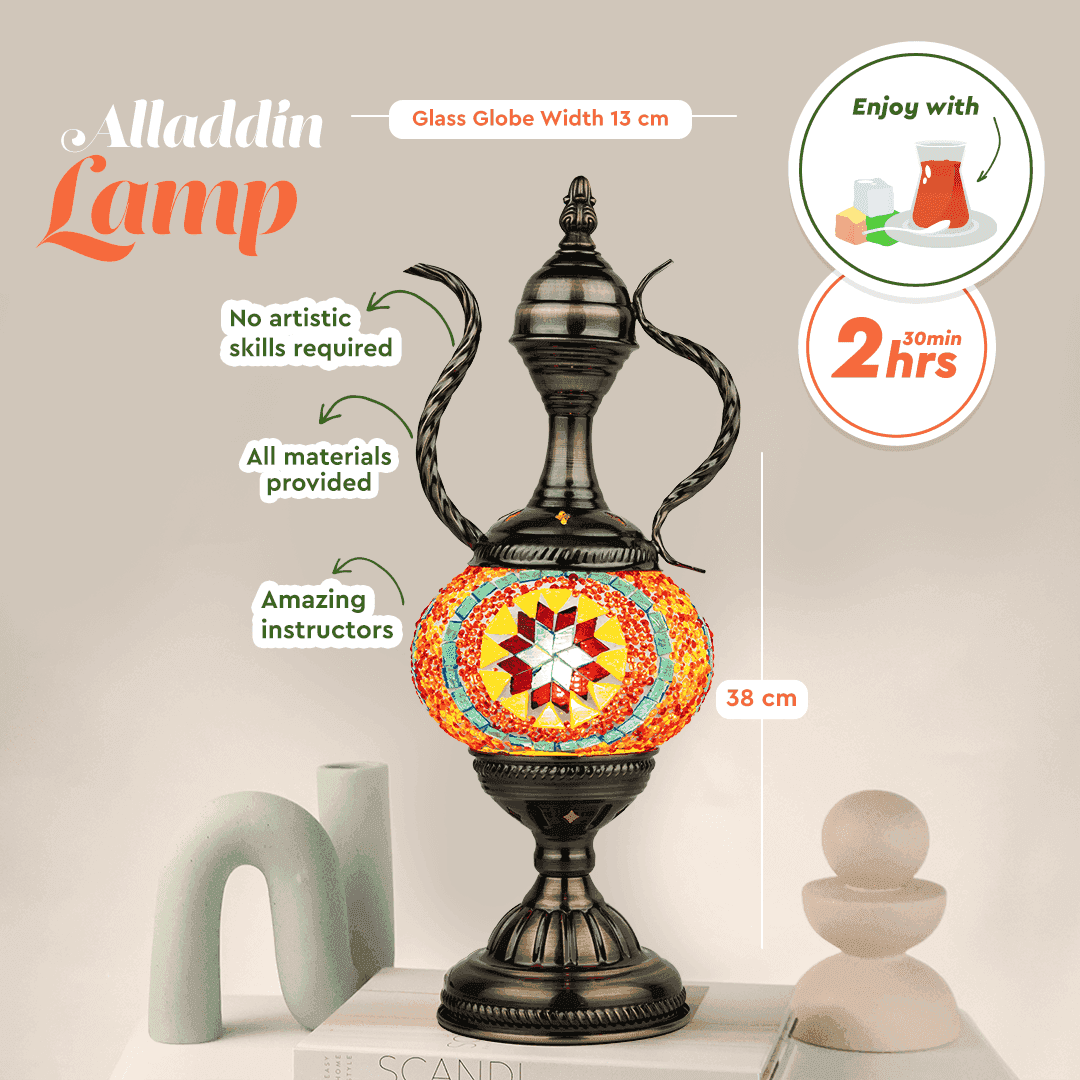 Our workshops are designed for beginners, so everyone is welcome to join. By the end of this 2.5-hour class, you’ll have your very own handcrafted mosaic lamp to take home, along with unforgettable memories.