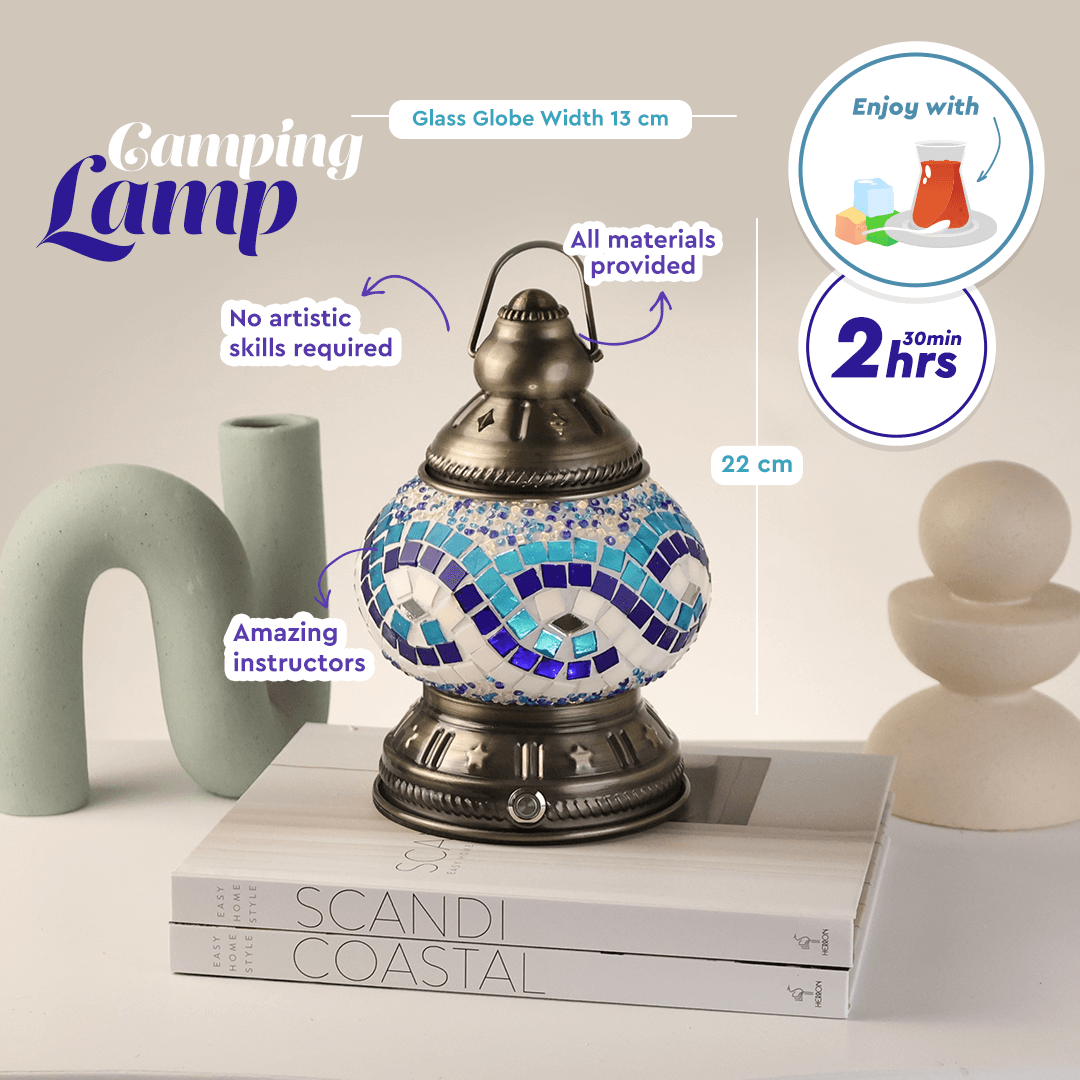 Our workshops are designed for beginners, so everyone is welcome to join. By the end of this 2.5-hour class, you’ll have your very own handcrafted mosaic lamp to take home, along with unforgettable memories.