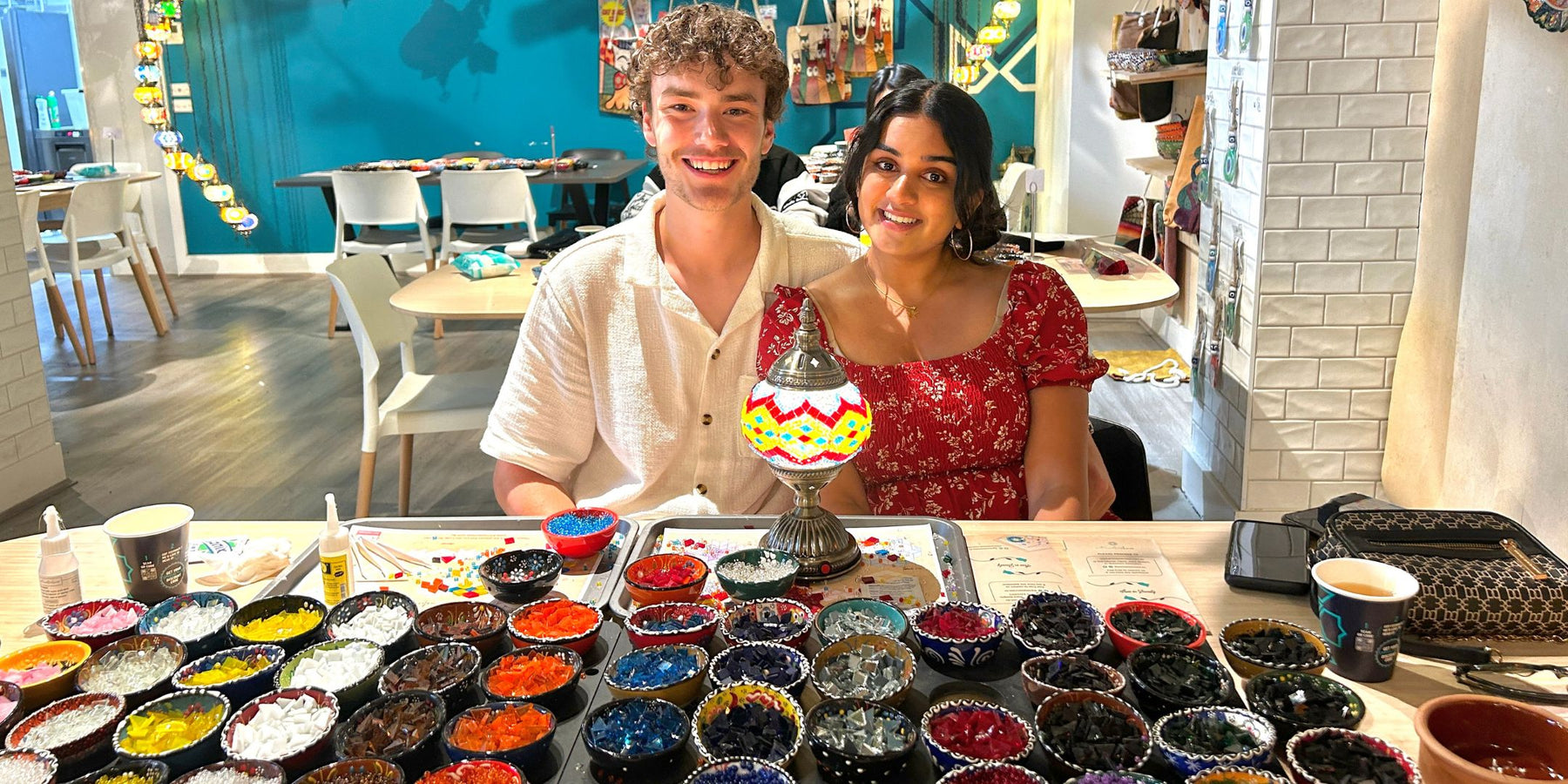 Our workshops are designed for beginners, so everyone is welcome to join. By the end of this 2.5-hour class, you’ll have your very own handcrafted mosaic lamp to take home, along with unforgettable memories.